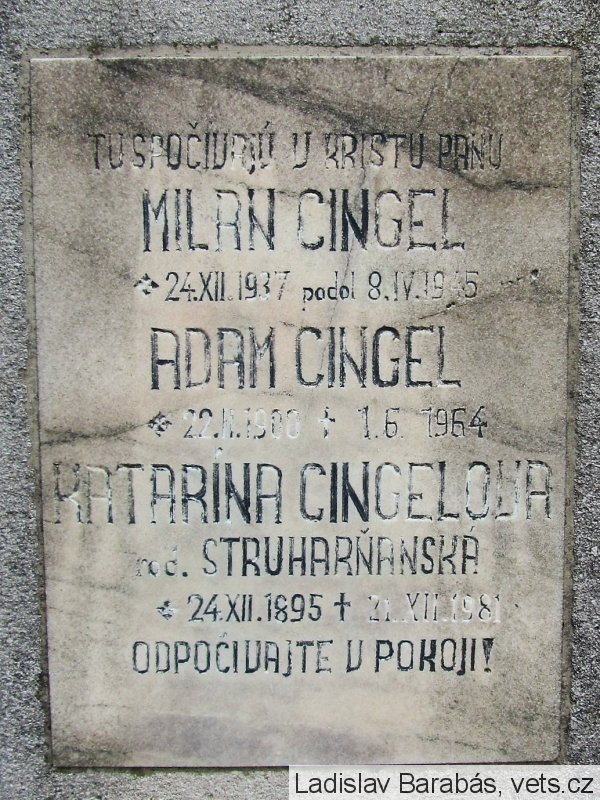 Milan Cingeľ je uvedený aj na pamätnej tabuli obetiam SNP na obecnom úrade v obci.