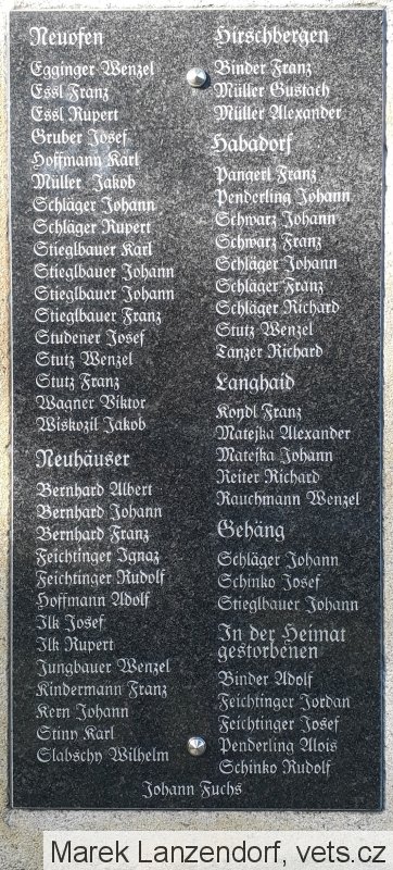 Bernhard Albert, Bernhard Johann, Bernhard Franz, Feichtinger Ignaz, Feichtinger Rudolf, Hoffmann Adolf, Ilk Josef, Ilk Rupert, Jungbauer Wenzel, Kindermann Franz, Kern Johann, Stiny Karl, Slabschy Wilhelm, Johann Fuchs