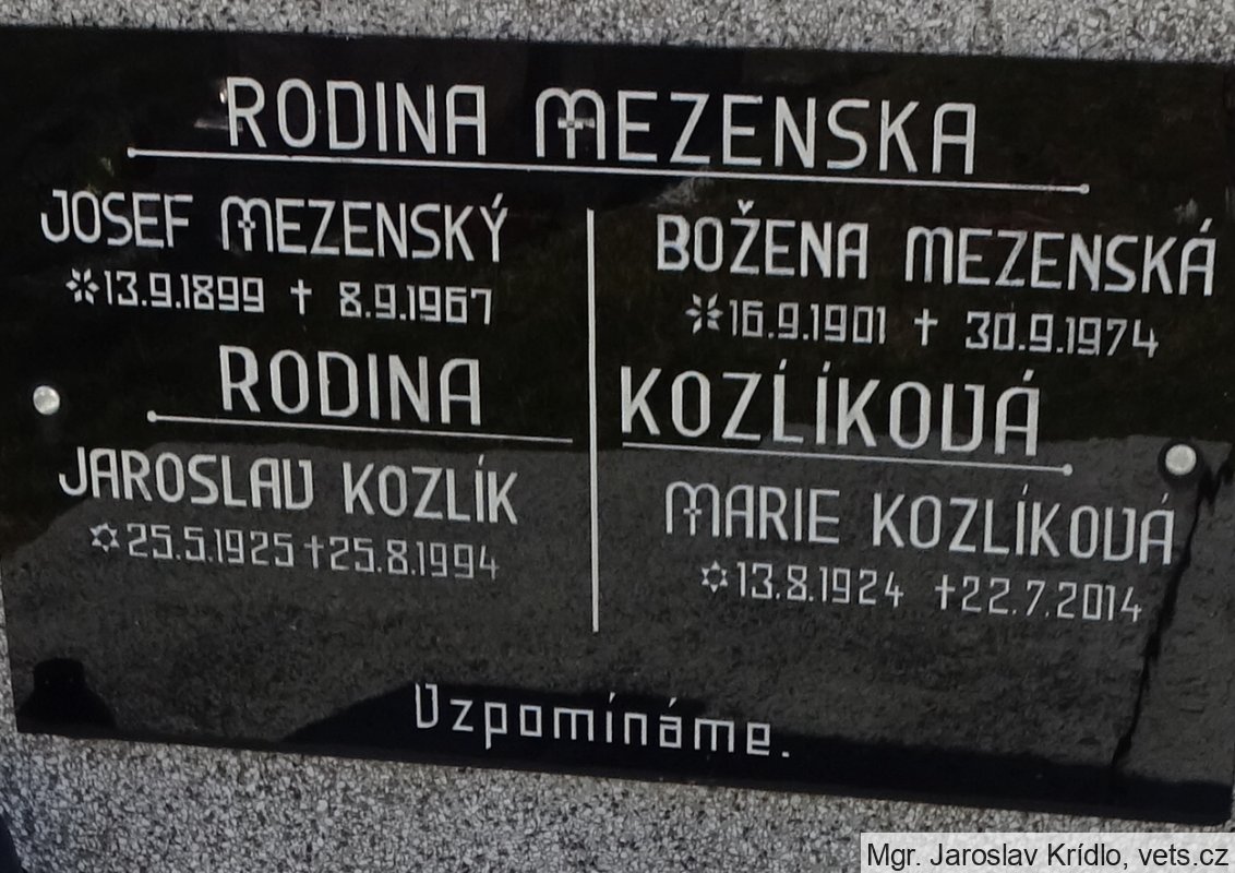 Umístění: Libědice, hřbitovJOSEF MEZENSKÝ