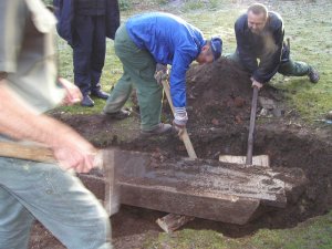 Pomník byl nalezen při zemních pracech v (sousední) obci Mrázov.