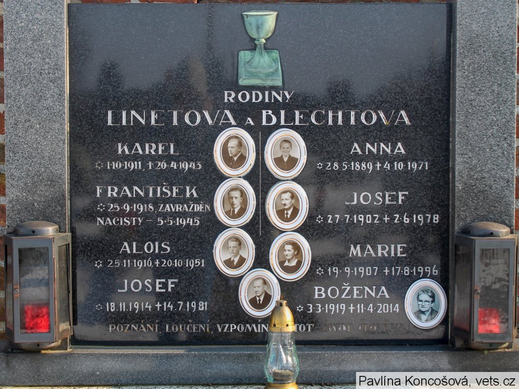 Jedna z obětí vypálení Javoříčka dne 5.5.1945. František Linet (26 let) z Ješova byl nalezen mrtev v jednom z domků. Společný hrob všech 38 obětí se nachází v místě dnešního památníku.