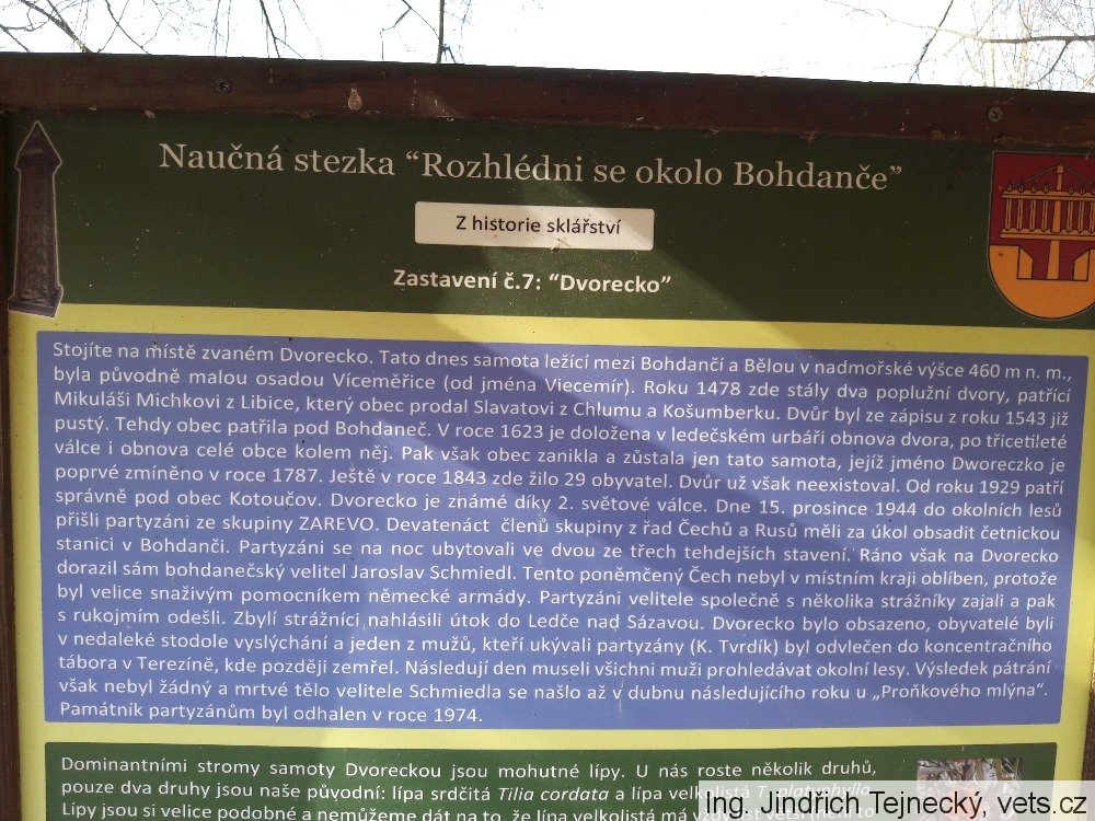 Z nápisu na desce naučné stezky „Rozhlédni se okolo Bohdanče“, zastavení č.7: