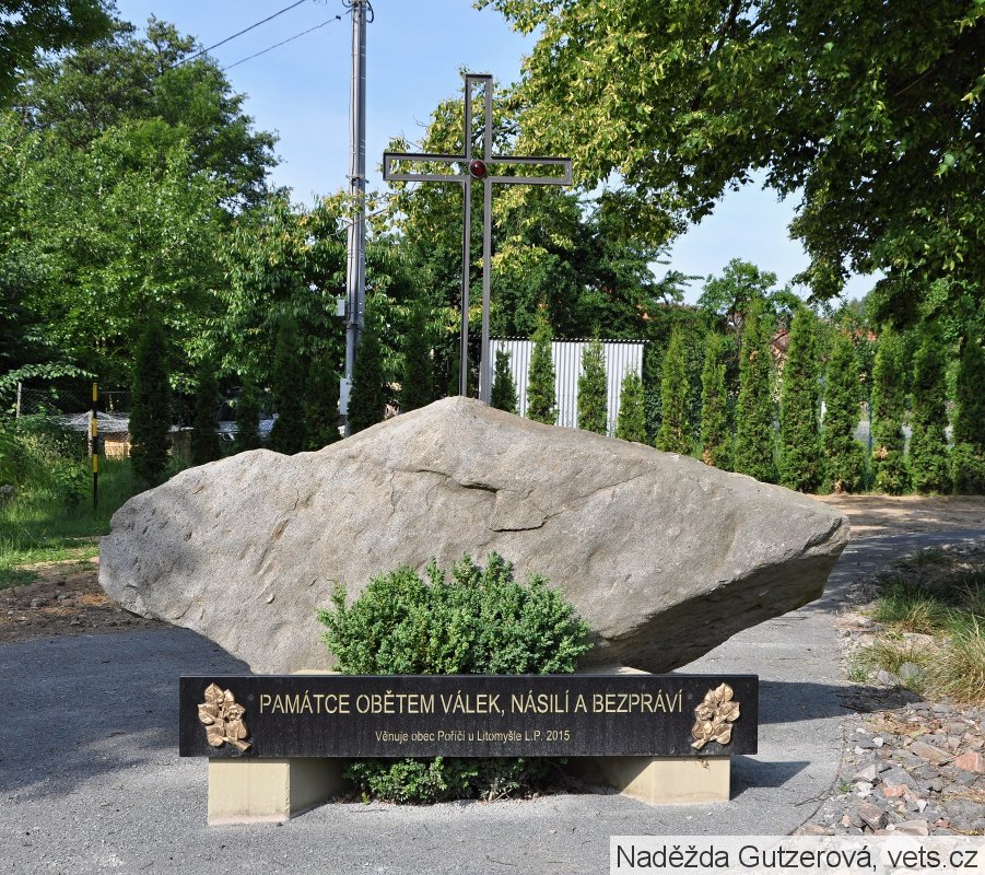 Umístění: Poříčí u Litomyšle, střed obce, mezi hlavní silnicí a říčkou Desnou, vedle odbočky do obce ZrnětínNápis: