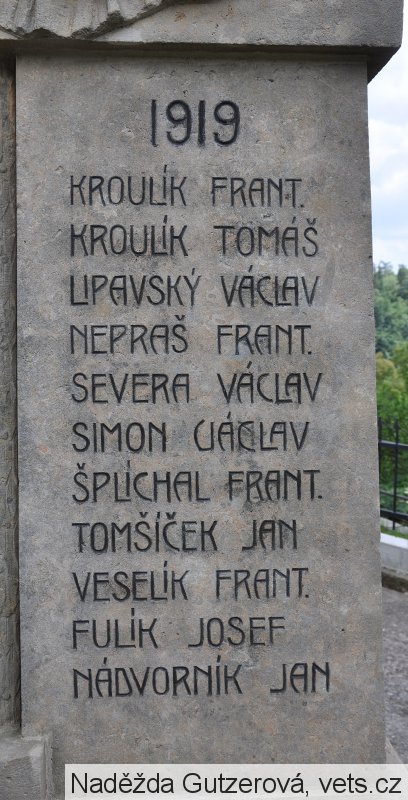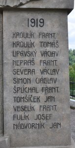 Pomník odhalen v roce 1920. Autoři Koula a Měchýř, Choceň. Za nacistické okupace byla odstraněna socha legionáře a měla být zničena. Místní jí však ukryti a pomník byl znovu odhalen v roce 1945, kdy byla doplněna kovová desce s obětmi 2. světové války.