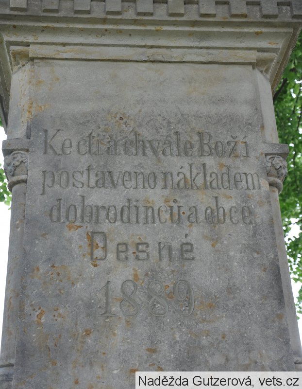 Umístění: Desná, střed obce, poblíž obecního úřadu, kamenný kříž s lipami