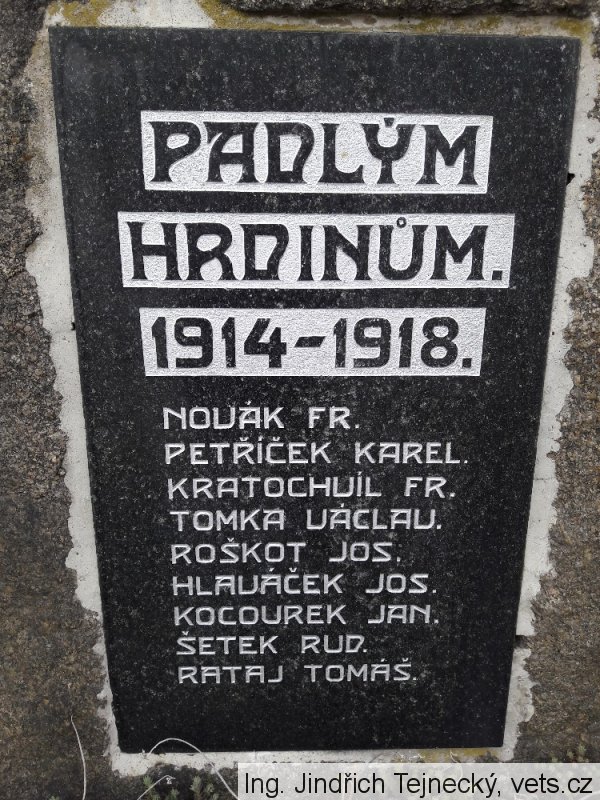 Jméno Tomáš Rataj je v obci na pomníku 1. světové války