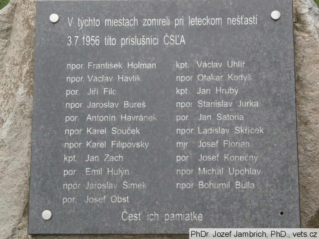 por. Josef OBST *14.1.1930 †3.7.1956, por. Jiří FILC *23.10.1930 †3.7.1956, npor. Michal UPOHLAV *6.5.1923 †3.7.1956, npor. Stanislav JURKA *17.1.1912 †3.7.1956, npor. František HOLMAN *26.1.1930 †3.7.1956, npor. Václav HAVLÍK *20.9.1930 †3.7.1956, npor. Karel FILIPOVSKÝ *27.11.1911 †3.7.1956, por. Josef KONEČNÝ *28.11.1928 †3.7.1956, kpt. Václav UHLÍŘ *29.2.1924 †3.7.1956, npor. Jaroslav ŠIMEK *1.5.1931 †3.7.1956, kpt. Jan ZACH *29.4.1902 †3.7.1956, mjr. Josef FLORIAN *23.4.1913 †3.7.1956, npor. Ladislav SKŘÍČEK *26.9.1922 †3.7.1956, npor. Bohumil BULLA *neuvedený †3.7.1956, kpt. Jan HRUBÝ *15.3.1920 †3.7.1956, npor. Jaroslav BUREŠ *17.12.1928 †3.7.1956, npor. Karel SOUČEK *18.5.1931 †3.7.1956, npor. Otakar KODYŠ *21.11.1906 †3.7.1956, por. Jan SATORIA *30.3.1934 †3.7.1956, por. Emil HULÝN *10.9.1935 †3.7.1956, por. Antonín HAVRÁNEK *4.3.1931 †3.7.1956