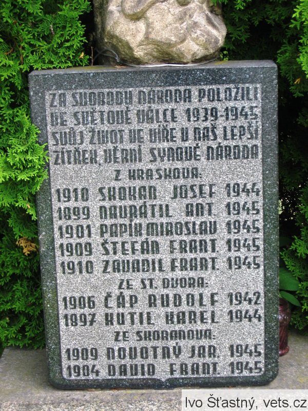 Za svobodu národa položli ve světové válce 1939 -1945 svůj život ve víře v náš lepší zítřek věrní synové národa.