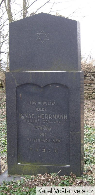 Ignác Herrmann, podle posledního zjištění narozen Nasavrkách u Miličína (a ne v Rašovicích u Tábora, jak se někdy udává) 25. listopadu 1856 (udáváno i 6. srpna). Absolvoval táborské reálné gymnázium a medicínu na Karlo-Ferdinandově univerzitě (promován 1883 na její německé části). Vstoupil záhy do armády. Když byl roku 1912 formálně penzionován, byl jedním ze sedmi vrchních štábních lékařů I. třídy u zeměbrany, rytířem Řádu Františka Josefa, nositelem zlatého Záslužného kříže s korunou, bronzové Jubilejní pamětní medaile ozbrojené moci a Vojenského jubilejního kříže. Je pravděpodobnější, že hodnost generála získal ještě v rakousko-uherské armádě, ačkoliv se tradovalo, že nepokřtěný Žid mohl dosáhnout nejvýše hodnosti plukovníka. Po roce 1918 příslušník zdravotnické služby Armády Československé republiky. Zemřel v Ruzyni 5. listopadu 1938 (na náhrobku uvedeno datum chybně) a o tři dny později pohřben v Prudicích. Souřadnice odečteny z webu.