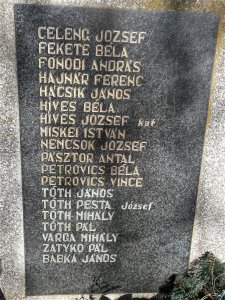 CELENG JOZSEF, FEKETE BÉLA, FONODI ANDRÁS, HAJNÁR FERENC, HÁCSIK JÁNOS, HÍVES BÉLA, HÍVES JOZSEF kat, MISKEI ISTVÁN, NEMCSOK JOZSEF, PÁSZTOR ANTAL, PETROVICS BÉLA, PETROVICS VINCE, TÓTH JÁNOS, TÓTH PESTA József, TÓTH MIHÁLY, TÓTH PÁL, VARGA MIHÁLY, ZATYKO PÁL, BABKA JÁNOS