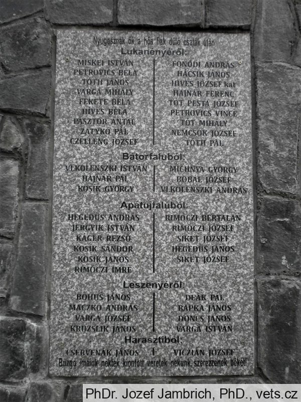 BAKOS ISTVÁN, BATTA JOZSEF, BOLBOK GYÖRGY, CVENGEL ISTVÁN, CSERNIK MIHÁLY, GYÖRGY JÓZSEF, GYÖRGY PÁL, HÍVES ISTVÁN mateka, HÍVES ISTVÁN miskei, HLAVÁCS VINCE, HÚSTYAVA