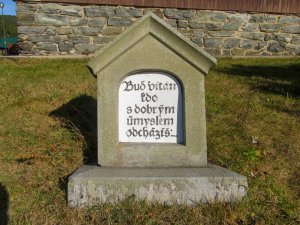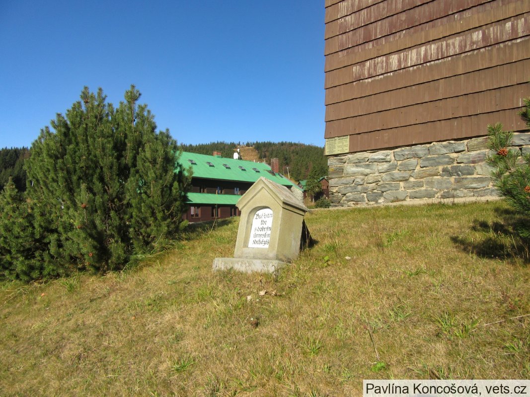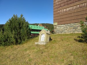 Malý pomníček s českým nápisem u chaty na jižní straně je torzem památníku padlých turistů a přátel hor sudetského horského spolku.
