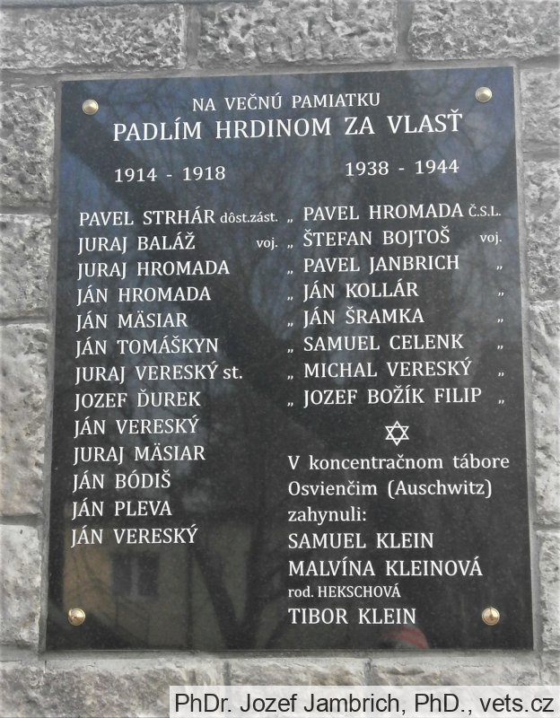 Ján Vereský, vojak, c. a k. peší pluk 26, padol medzi 2. a 10.9.1914 na ruskom fronte