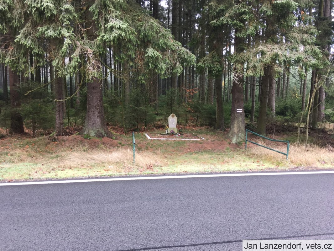 Umístění: Obora, u silnice č. 199, za Oborou směrem hraniční přechod Pavlův Studenec / Bärnau, cca v polovině vzdálenosti mezi obcí Obora a hraničním přechodem, na okraji lesa po levé straně přímo naproti opuštěnému objektu bývalé pohraniční strážeDne 12.9.1957