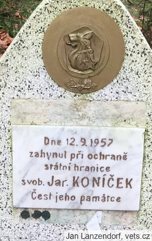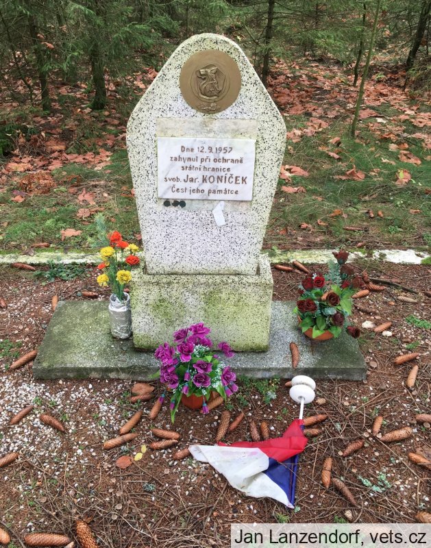 Dne 12. 9. 1957 v 05.00 hodin byla do služby podle rozhodnutí velitele 9. roty vyslána ZVP roty por. Plankou hlídka ve složení čet. zákl. služby Uvíra a svob. Koníček s úkolem konat službu na okraji lesa v pravé části úseku jako stráž hranice do rozednění a poté vystoupit na pozorovatelnu jako pozorovací hlídka do 09.00 hodin a vykonávat zde službu. Po celou noc vál silný západní vítr. Kolem 07.30 ještě zesílil. Čet. Uvíra se rozhodl, že sestoupí z pozorovatelny na zem. Otevřel poklop v podlaze pozorovatelny a začal sestupovat z pozorovatelny dolů. Když byl těsně pod pozorovatelnou, silný poryv větru celou pozorovatelnu nadzvedl a hodil ji na smrk. Při tom došlo k utržení budky, ve které byl v té době svob. Koníček, ta i s ním spadla mezi stromy na zem a roztříštila se. Svobodník Koníček zůstal na místě mrtvý v troskách budky.