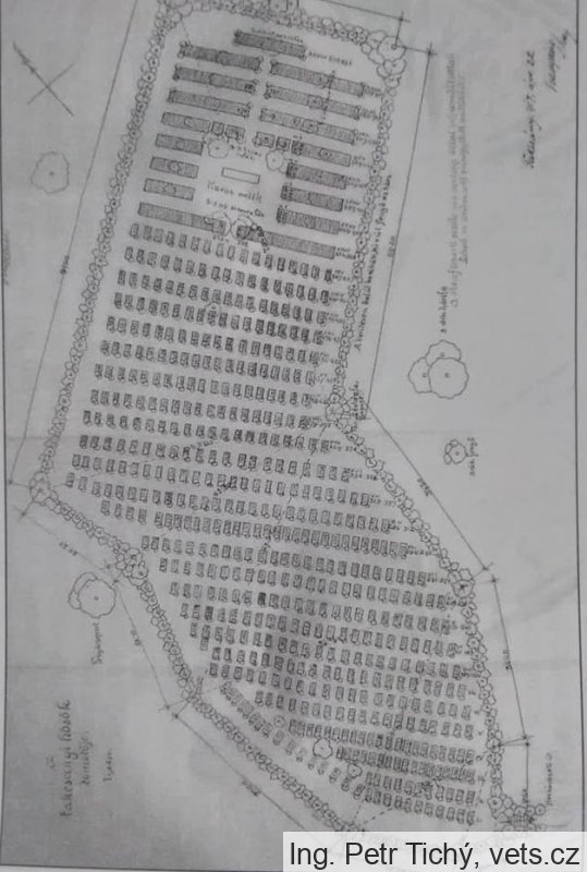 Hřbitov byl ohrazen dřevěným plotem a výsadbou jalovců a smrků, okolo hromadných hrobů a pomníku byla vysazena skupina smutečních vrb.