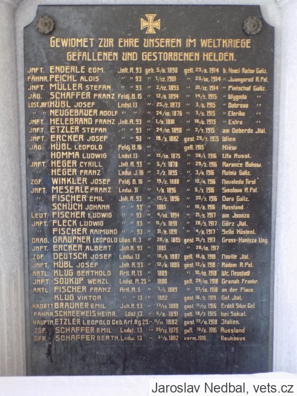 INFT. ETZLER STEFAN " " 93 " 24./10.1890 " 2./7.1915 am Doberdo Ital.