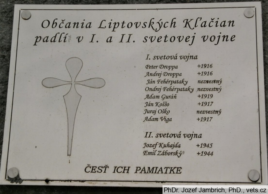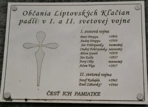 Umístění: Liptovské Kľačany, stred obce, pred Obecným úradom Liptovské Kľačany č. 72Nápis: