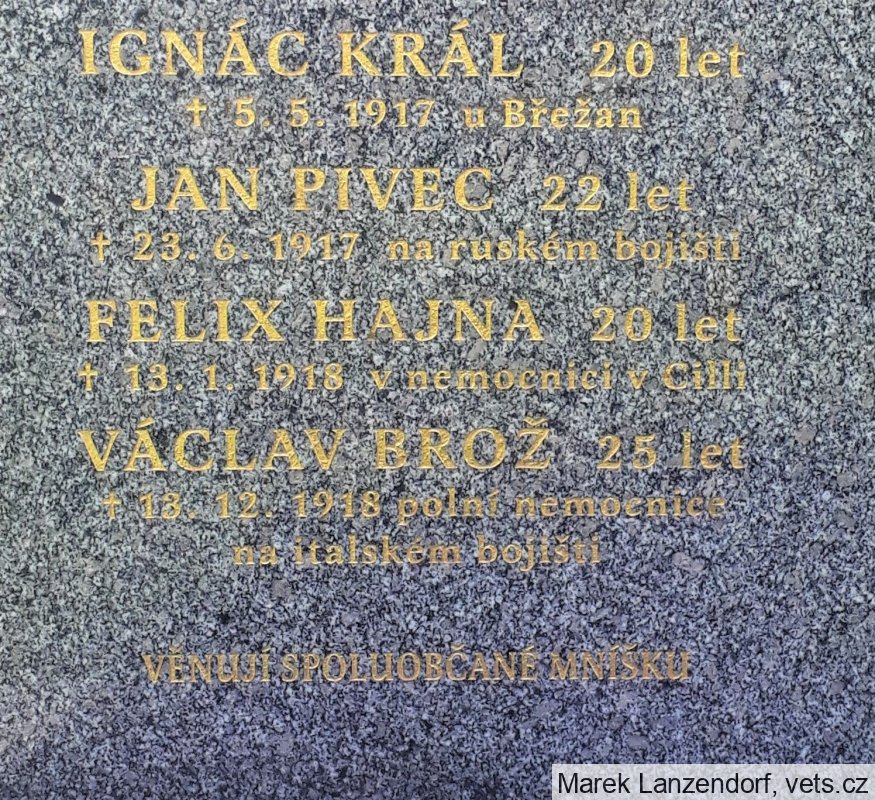 Umístění: Mníšek, střed obce vedle kapleNápis: