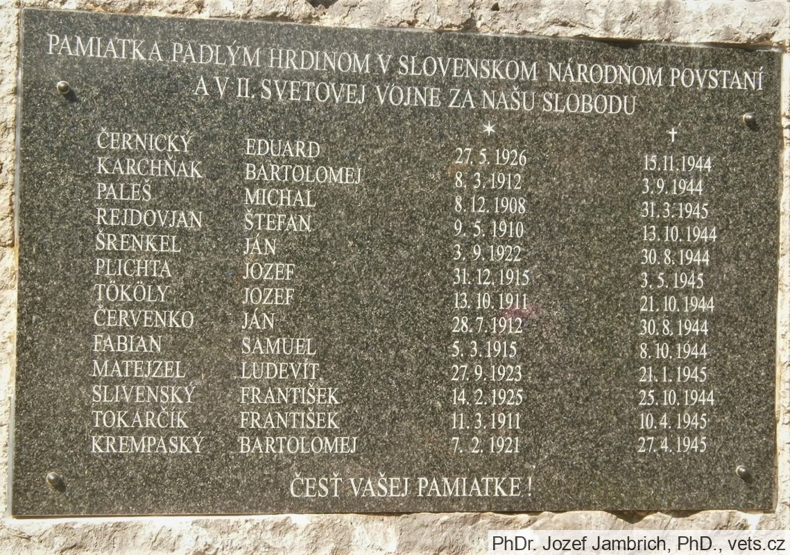 PAMIATKA PADLÝM HRDINOM V SLOVENSKOM NÁRODNOM POVSTANÍ