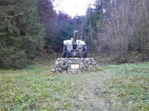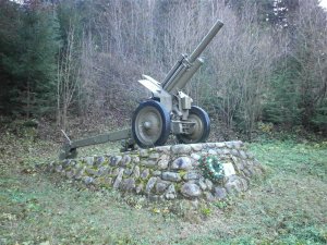 Pomník bol postavený na počesť delostrelcov II. taktickej skupiny povstaleckej armády, ktorý mali veľký podiel na úspešnej obrane úseku Kráľova Lehota ─ Čertovica počas SNP. Na podstavci z kameňov je umiestnená 122 mm húfnica vz. 38. Povstalecká armáda tento typ húfnice nepoužívala. Bola to sovietska húfnica, ktorá bola aj vo výzbroji 1. československého armádneho zboru v ZSSR. V rokoch 1953 ─ 1957 sa licenčne vyrábala aj v Československu v Dubnici nad Váhom.