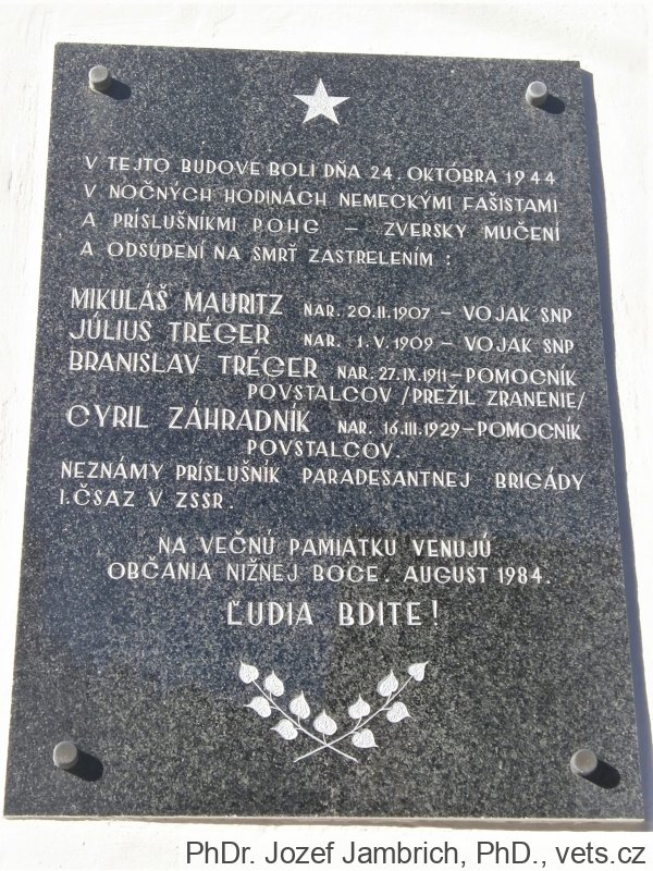 Umístění: Nižná Boca, stred obce, na budove č. 63Nápis: