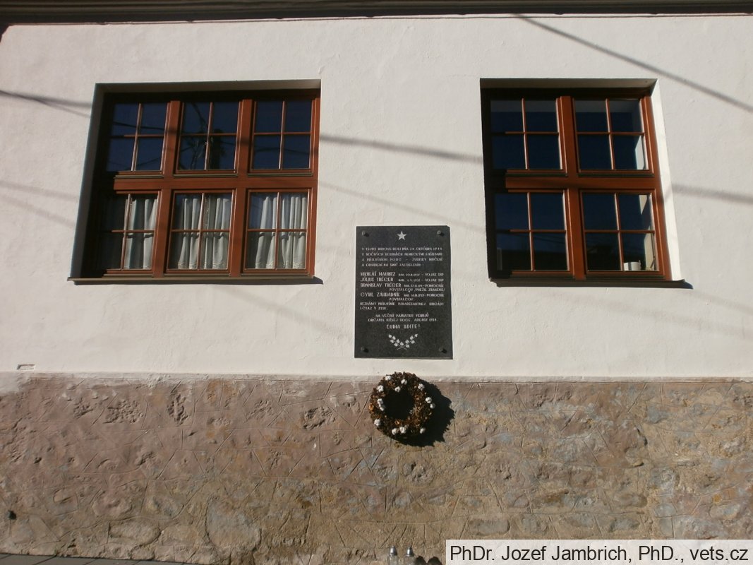 Poznámka: V TEJTO BUDOVE BOLI DŇA 24. OKTÓBRA 1944