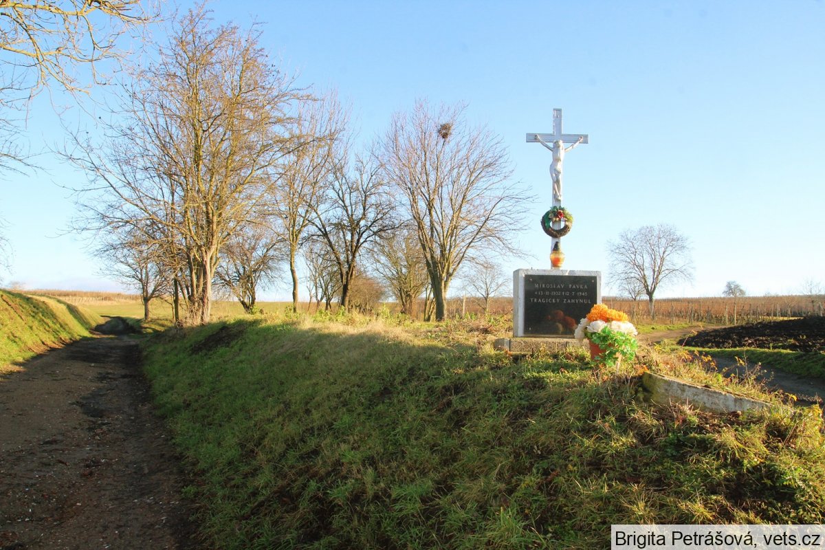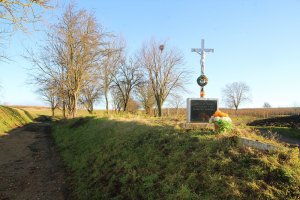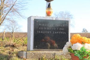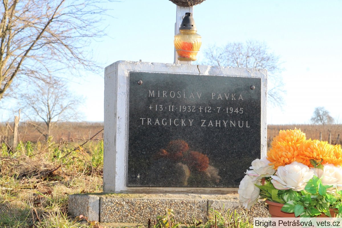 "Neštěstí se odehrálo 12. července roku 1945. V té době pyrotechnici zneškodňovali nevybuchnuté munice z druhé světové války. Každý majitel byl povinen projít své pole a případný nález oznámit. Kluci, kteří se sem vydali po vyučování náboje hledat, zde přišli v důsledku manipulace s nimi o život. Nalezená munice jim explodovala v rukou. Její obětí se stali dvanáctiletí chlapci Miroslav Pavka a Josef Stávek.