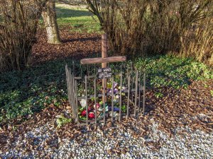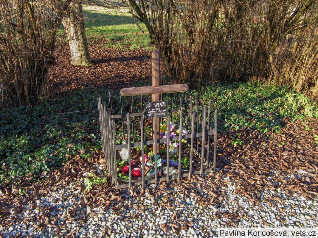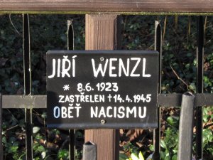 Pomník Jiřího Wenzla, který byl v tomto místě zastřelen při vojenské akci SS 14.4.1945.