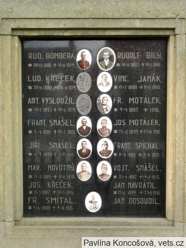 LUD. KŘEČEK, *25/5 1889 +25/8 1914. VINC. JANÁK, *15/7 1880 +8/5 1916.