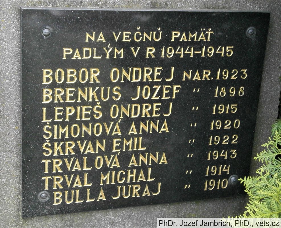 Umístění: Veľká Lúka, Chalupkova, obecný cintorín, južná časťNápis: