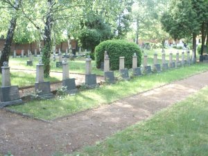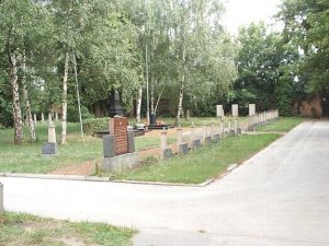 část textu na jednom pomníčku nečitelná, mezi pohřbenými je i jedna žena a sedumnáctiletý voják, na pohřebišti je 56 typově stejných pomníků