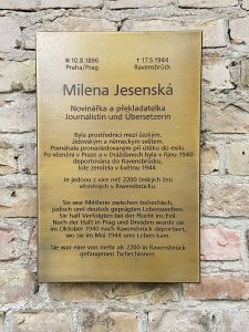 Umístění: Ravensbrück, Strasse der Nationen, vzpomínková zeď na jih od krematoria*10.8.1896 Praha/Prag +17.5.1944 Ravensbrück