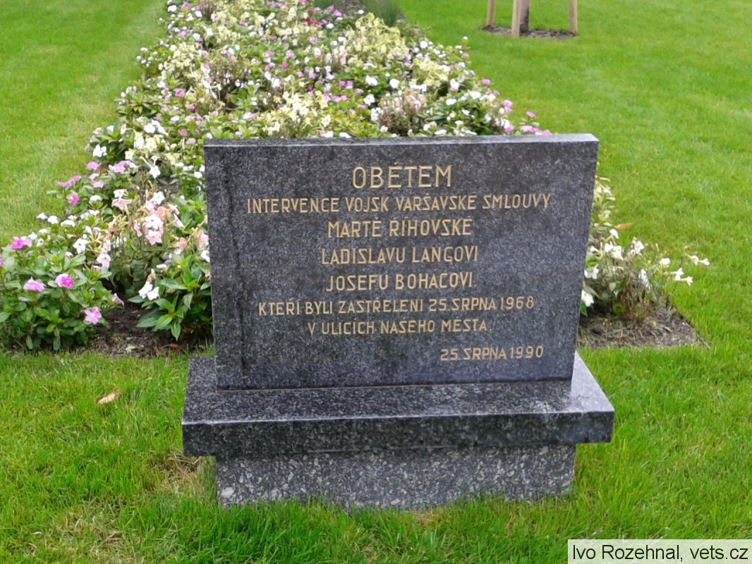 MARTĚ ŘÍHOVSKÉ, LADISLAVU LANGOVI, JOSEFU BOHÁČOVI, KTEŘÍ BYLI ZASTŘELENI 25.SRPNA 1968 V ULICÍCH NAŠEHO MĚSTA