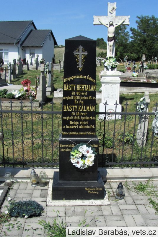 Kálmán Básty je uvedený aj na pomníku pred kostolom, ako obeť I. svetovej vojny.