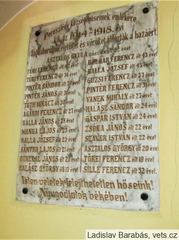 Pereszlény község hőseinek emlékére,