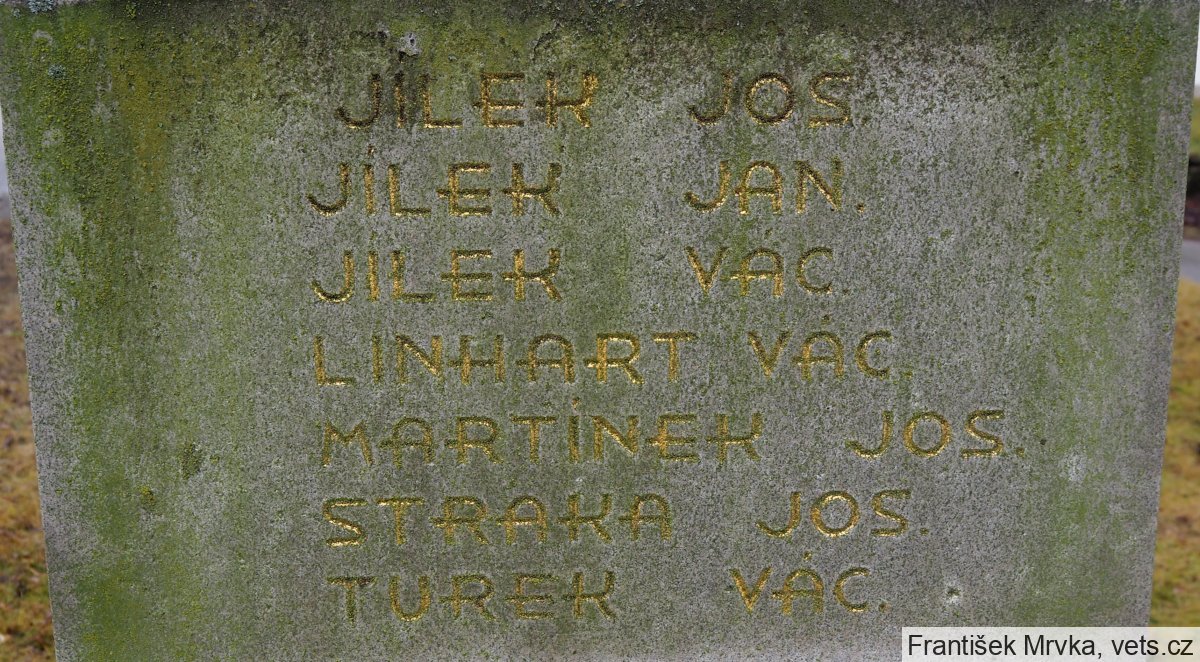 Jílek Josef, nar. 4.1.1885 Plevnice, bydliště Velečná, 75. pěší pluk, datum úmrtí 7.8.1915 - příčina ani místo neuvedeno, prohlášen za mrtvého 1.8.1919 Kraj. soudem v Táboře.