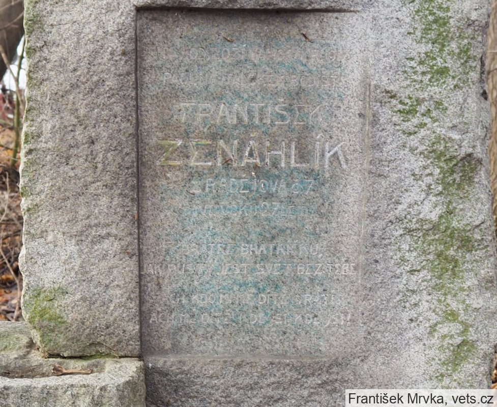 Franišek Zenáhlík, narozen 1890, domobranecký střelec, pluk císařských střelců č. III - 2. štábní oddíl, padl na italské frontě dne 23.12.1917.