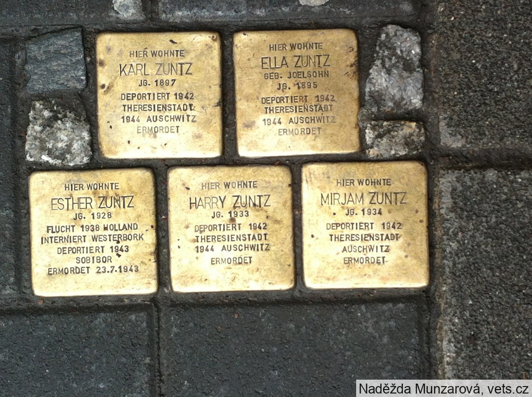 (zdroj: https://www.holocaust.cz/databaze-obeti/obet/37599-karl-zuntz/ , https://www.holocaust.cz/databaze-obeti/obet/37595-ella-zuntz/ , https://www.holocaust.cz/databaze-obeti/obet/37597-harri-zuntz/ , https://www.holocaust.cz/databaze-obeti/obet/37600-maryam-zuntz/ )