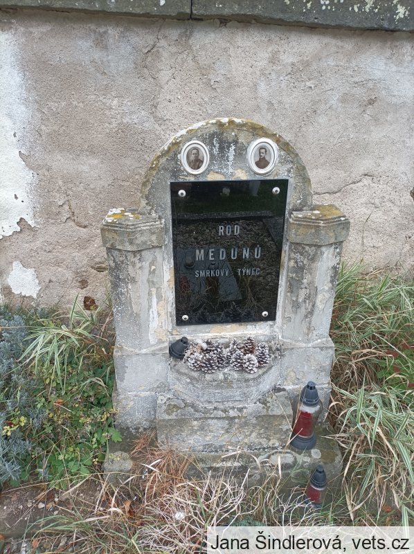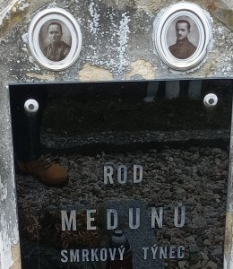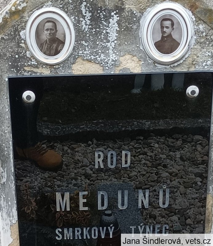 Sestry Medunovy z č.p. 1 Smrkový Týnec obě ovdověly během 1. světové války. Anna Medunová se provdala dne 23.11.1909 v kostele v Licibořicích za Františka Kábele, naroz. 26.1.1880 Smrkový Týnec č. 6. Zápisem Krajského soudu z 5.12.1921 se pohřešuje jako padlý od 7.6.1916. Příslušnost k útvaru R-U armády: pěší pluk 21, pak střelecký pluk 12, nezvěstný, místo úmrtí: Kolki, Luck, gub. Volyň, severní fronta, ruské bojiště.