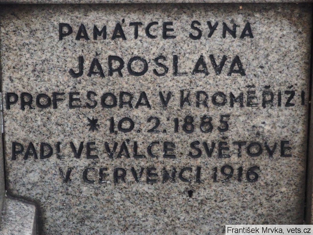 Krupička Jaroslav, četař zeměbraneckého pluku 25, nar. 10.2.1885 v Telči, příslušnost Kroměříž, padl 30.6.1916.