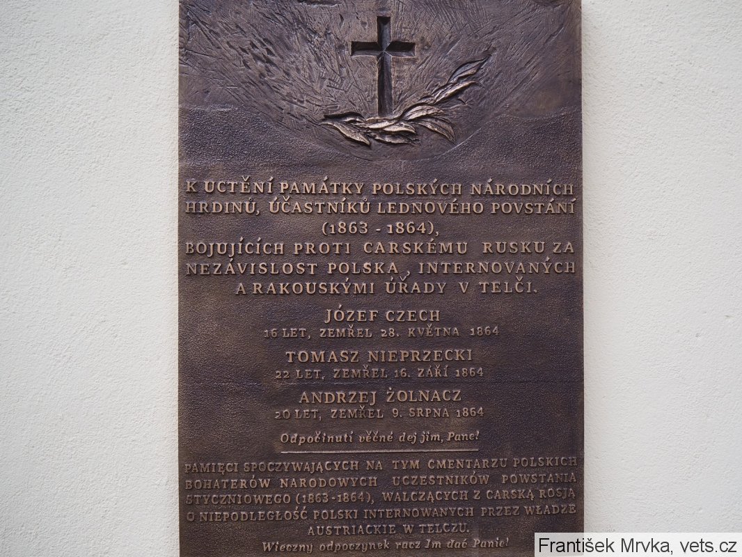 PAMIECI SPOCZYWAJACYCH NA TYM CMENTARZU POLSKICH BOHATERÓW NARODOWYCH UCZESTNIKÓW POWSTANIA STYCZNIOWEGO ( 1863 - 1864 ), WALCZACYCH Z CARSKA ROSJA O NIEPODLEGLOŚĆ POLSKI INTERNOWANYCH PRZEZ WLADZE AUSTRIACKIE W TELCZU.