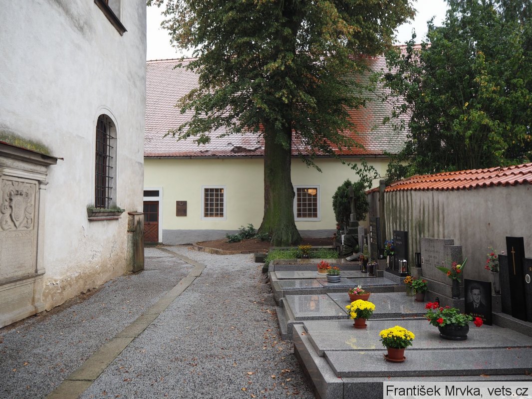 Umístění: Telč, U Matky Boží, hřbitov u Matky Boží, stěna domova pro seniory, místo tehdejšího hrobu