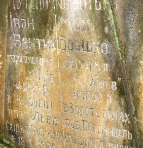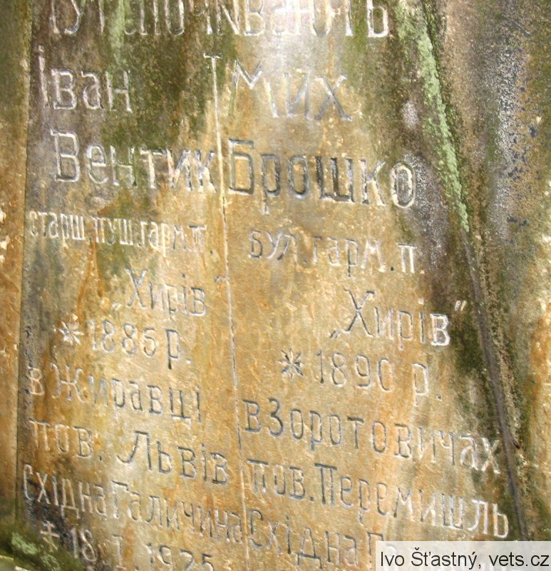 Мих. Брошко бул. гарм. п. Хирів *1890 р. в Зоротовичах пов. Перемишль. Східна Галичича +7.VІІ.1925.
