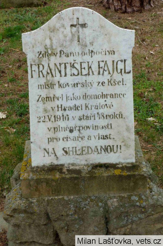 oddělení IV, hrob 123; vojín, pěší pluk 3, nar. 25.7.1892, zemřel 232.11.1914, příslušnost Morava