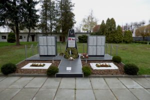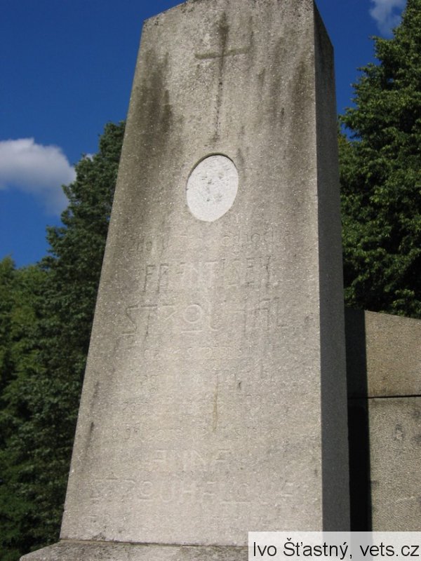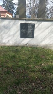 Pomník ve tvaru komolého jehlanu z broušené žuly, obehnaný plůtkem z litinových sloupků spojených řetězy. Společný hrob, který byl založen na základě výnosu Ministerstva národní obrany č.j. 63691-I, ze dne 17.11.1947 a výměrem č.j. 40159 ze dne 9.7.1950 „Vybudování společného monumentálního památníku pro vojenské osoby z 1. a 2. sv. války.“ (zdroj databáze CEVH MO ČR)