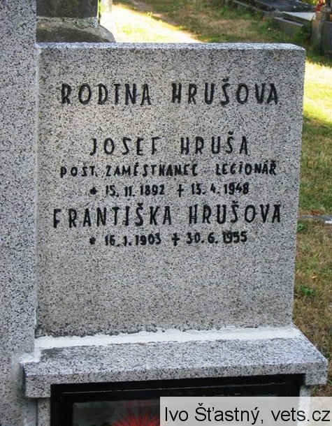 Hruša Josef, nar. 15.11.1892, Chrudim. V RU armádě sloužil u 21. pěšího pluku jako vojín. Zajat 25.5.1917, Hudilog. Do ČS legií v Itálii se přihlásil 18.4.1918. Zařazen 25.4.1918 jako vojín k 32. pěšímu pluku. Demobilizován 25.5.1920. (zdroj databáze VÚA Praha)