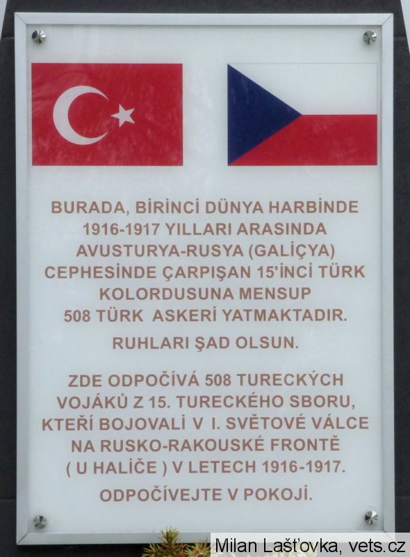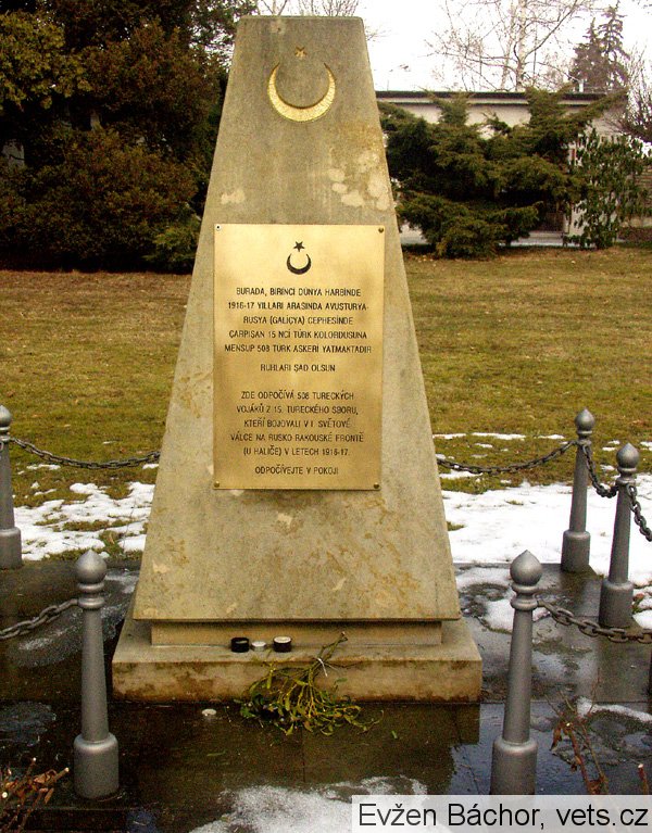 Vojáci zemřeli v pardubické vojenské nemocnici během 1. světové války. Na pardubickém hřbitově je pohřbeno celkem 515 tureckých vojáků, kteří byli zraněni během 1. světové války na jihoevropské frontě a převezeni do pardubické polní nemocnice, kde zemřeli. Polní nemocnice stála zhruba v místech dnešních Jesničánek a sídliště Dukla. Sváželi se do ní nejen zranění z fronty, ale také vojáci, kteří během války onemocněli infekčními nemocemi. Zemřelí byli pochováváni na pardubickém hřbitově., zhruba v místech, kde dnes stojí krematorium. V 50. letech minulého století byly hroby exhumovány a ostatky vojáků různých národností uloženy do jiných hrobů. Od konce 90. let stojí na místě jejich posledního odpočinku společný památník obětem světových válek. Vzpomínkový akt organizuje turecká strana u hrobů svých krajanů kolem 18. března. Na tento den připadá v Turecku státní svátek připomínající osamostatnění Turecké republiky v roce 1915. Turci v tento den uctívají památku všech obětí válek. (autor snímku a VPM)