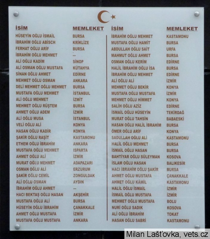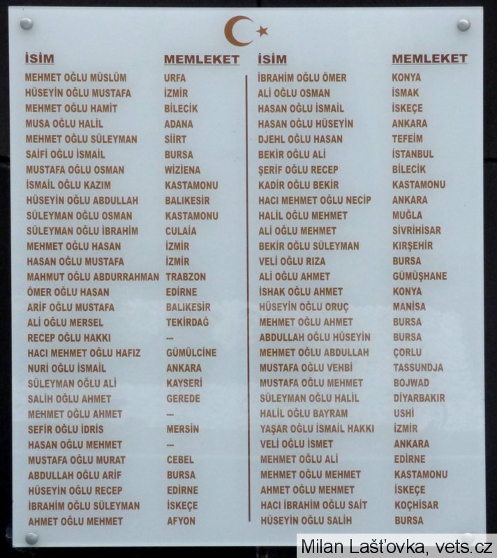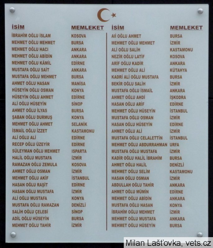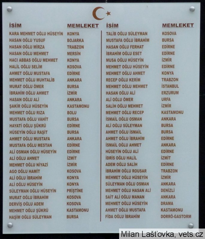 Mehmed oglu Abadin vojín *1884 +1917, Mehmed oglu Abadin vojín +1917, Ali oglu Abdul vojín +1916, Mehmed oglu Abdul vojín +1917, Ahmed oglu Abdula vojín +1916, Isrnail oglu Abdula vojín *1898 +1917, Hassan oglu Abdulah vojín *1885 +1917, Hussein oglu Abdulah vojín *1899 +1917, Hussein oglu Abdulah svobodník +1917, Chamadulin oglu Abdulah vojín *1879 +1917, Ibrahim oglu svobodník *1881 +1917, Kamber oglu Abdulah vojín +1917, Mustafa oglu Abdulbrahman vojín *1876 +1918, Mahmoud oglu Abdullrachman vojín +1917, Mustafa oglu Ábdulme vojín +1916, Ibrahim oglu Abisch vojín +1917, Ahmed oglu Adem vojín *1881 +1917, Ahmed oglu Ahdi vojín *1899 +1917, Salin oglu Ahmad vojín +1917, Ahmed oglu Ahmaed vojín *1892 +1917, Adem oglu Ahmed vojín +1917, Ali oglu Ahmed vojín +1917, Ali oglu Ahmed vojín *1897 +1917, Ali oglu Ahmed vojín *1897 +1917, Halil oglu Ahmed vojín *1897 +1918, Halil oglu Ahmed svobodník +1918, Hussein oglu Ahmed vojín *1878 +1917, Hussein oglu Ahmed vojín *1898 +1917, Ibrahim oglu Ahmed vojín +1917, Isak oglu Ahmed vojín +1917, Mehmed oglu Ahmed vojín +1917, Mehmed oglu Ahmed vojín *1871 +1917, Mehmed oglu Ahmed desátník +1917, Mehmed oglu Ahmed vojín *1886 +1917, Mehmed oglu Ahmed vojín +1917, Mehmed oglu Ahmed vojín +1917, Mohamed oglu Ahmed vojín +1917, Omer oglu Ahmed vojín *1888 +1917, Selim oglu Ahmed vojín +1918, Shakir oglu Ahmed vojín *1886 +1917, Sinan oglu Ahmed vojín *1883 +1917, Sohaban oglu Ahmed vojín *1897 +1917, Tajfuk oglu Ahmed vojín *1893 +1918, Mehmed oglu Akif vojín *1897 +1917, Ahmed oglu Ali vojín +1916, Ahmed oglu Ali svobodník *1896 +1917, Ahmed oglu Ali svobodník +1917, Ahmed oglu Ali vojín +1918, Ahmed oglu Ali vojín +1918. Ali oglu Ali vojín +1916, Ali oglu Ali vojín +1917 Ali oglu Ali vojín +1917, Ali oglu Ali vojín *1878 +1917, Bekir oglu Ali vojín +1917, Dervisoh oglu Ali vojín *1871 +1917, Hasibektasch oglu Ali vojín +1916, Hassan oglu Ali vojín *1893 +1917, Hassan oglu Ali vojín +1915, Hussein oglu Ali vojín *1872 +1918, Ismail oglu Ali vojín +1917, Ismail Said oglu Ali vojín *1887 +1918, Jakub oglu Ali svobodník +1916, Mahraud Osman oglu Ali vojín +1918, Machmud Hassan oglu Ali vojín *1888 +1918, Mehmed oglu Ali vojín +1917, Mehmed oglu Ali vojín *1890 +1917, Mehmed oglu Ali vojín *1888 +1917, Mustafa oglu Ali vojín +1916, Mustafa oglu Ali vojín +1916, Mustafa oglu Ali vojín *1890 +1918, Osman oglu Ali vojín +1916, Redžeb oglu Ali vojín +1917, Rustein oglu Ali vojín *1892 +1917, Satul oglu Ali vojín +1917, Siam oglu Ali vojín *1888 +1917, Sulejman oglu Ali vojín +1917, Tahit oglu Ali vojín +1918, Teurisch oglu Ali vojín +1916, Veli oglu Ali vojín *1893 +1917, Ahmed oglu Ali Mustafa vojín +1916, Ferherd oglu Ali Rize vojín *1897 +1917, Dervisch oglu Alim vojín +1917, Ali oglu Alimed vojín +1917, Ismail oglu Alimed vojín +1918, Mustafa oglu Aliss vojín +1917, Mehmed oglu Amid vojín +1917, Vager Antoněnko *1887 +30.7.1915, Ali oglu Arid vojín +1916, Abdullah oglu Arif vojín +1917, Burnus oglu Arif vojín +1916, Ferhard oglu Arif vojín +1917, Hassan oglu Arif svobodník *1883 +1917, Mehmed oglu Arif vojín *1888 +1918, Mehmed oglu Arif vojín *1898 +1918, Omer oglu Arif vojín *1899 +1917, Fedor Arsentiev *1890 +25.11.1918, Fedor Arsentiev *1890 +25.11.1918, Ali oglu Aslam vojín *1881 +1917, Salil oglu Azir vojín *1894 +1917, Abdulah oglu Bajram vojín *1872 +1917, Riza oglu Bajram vojín *1899 +1917, Hassan oglu Bekir vojín +1916, Kadir oglu Bekir vojín +1917, Bekir vojín +1917, Selim oglu Bekir vojín *1883 +1917, Halil oglu Beram vojín *1895 +1917, Naum Beranik *1892 +22.11.1918, Nikola Berdukov *1885 +19.5.1919, Hassan oglu Beschir vojín +1917, Ivan Bespala *1885 +21.12.1918, Katmov Bezetulim *1884 +19.7.1915, Fedor Bokutielo *1883 +10.10.1915, Ivan Burikov *1884 +26.12.1918, Michael Bury *1881 +21.11.1918, Alexej Butěnko *1882 +3.12.1918, Jegor Byčkov *1890 +6.12.1918, Piotr Clejnik *1874 +27.6.1915, Jelstignič Darocholf *1892 +15.7.1915, Ali oglu Dervisoh vojín *1893 +1917, Osman oglu Diofer vojín *1893 +1917, Mehmed oglu Dirmisch vojín *1897 +1917, Hairuch oglu Djafer vojín *1897 +1917, Mustafa oglu Djemit vojín +1916, Michael Duganov *1886 +17.6.1915, Schaban oglu Durmisch vojín +1917, Jan Dušan *1872 +12.8.1917, Mustafa oglu Dzelaletil vojín +1917, Mehmed oglu Edip vojín *1895 +1917, Mustafa oglu Emin vojín +1918, Ibrahim oglu Eset vojín *1892 +1917, Alexander Fanksen *1889 +15.12.1918, Hassan oglu Ferad vojín *1898 +1917, Dimitrij Froklisov +2.11.1918, Ondrej Futin *1894 +22.10.1918, Hadji Ibrahim oglu Ghakir vojín *1888 +1917, Ibrahim oglu Hadji vojín *1873 +1917, Mehmed oglu Hadji vojín +1917, Vessen oglu Hadji vojín +1917, Redzseb oglu Haki vojín +1917, Ahmed oglu Halil vojín +1917, Ahmed oglu Halil vojín +1917, Halil oglu Halil vojín *1891 +1918, Hassan oglu Halil vojín +1916, Hussein oglu Halil vojín +1916, Ibrahim oglu Halil vojín +1917, Infris oglu Halil vojín *1895 +1918, Moussa oglu Halil vojín *1891 +1918, Musra oglu Halil vojín +1917, Osman oglu Halil svobodník +1916, Sulejman oglu Halil vojín *1898 +1917, Mustafa oglu Hamdi vojín +1918, Mustafa oglu Hamid vojín +1917, Ogo oglu Hamid vojín *1892 +1917, Isrnail oglu Haoki svobodník +1917, Ahmed oglu Hassan vojín *1884 +1917, Ali oglu Hassan vojín *1877 +1917, Ali oglu Hassan vojín *1874 +1918, Djehl oglu Hassan vojín +1917, Hussein oglu Hassan vojín +1917, Hussein oglu Hassan vojín *1893 +1917, Ismail oglu Hassan vojín +1917, Ismail oglu Hassan vojín +1917, Mehmed oglu Hassan vojín +1917, Mustafa oglu Hassan vojín +1917, Omer oglu Hassan vojín +1917, Veli oglu Hassan vojín +1917, Sulejman oglu Hilim desátník *1883 +1917, Mahmed oglu Himet vojín +1917, Vasil Horoch *1880 +20.10.1918, Mehmed oglu Hu svobodník +1916, Adil oglu Hussein vojín +1917 Ali oglu Hussein vojín +1916, Ali oglu Hussein vojín +1917, Ali oglu Hussein vojín +1917