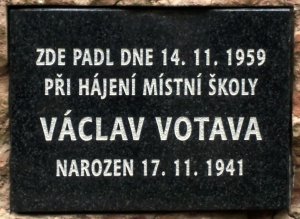 dle informací místního občana - Václav Votava honil lupiče, kteří se vloupali do školy a při tom došlo k nehodě, kterou nepřežil.